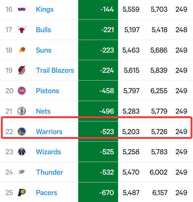 值得一提的是,勇士的罚球净胜数是-523,仅仅排名联盟第22位。